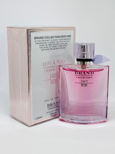 Perfume Brand Collection – Frag. Nº 076  Os perfumes da Brand Collection são baseados nas fragrâncias famosas das grandes grifes, chamados de referências olfativas. A linha Brand Collection trabalha com perfumes Travel Size (tamanho para viagem), fabricados em tamanho único de 25 ml. Com essa proposta o cliente tem acesso a vários perfumes, possibilitando ter diversas opções de perfumes sem investir um valor muito alto.