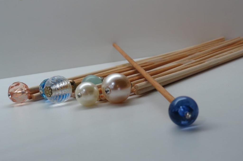 As varetas decoradas dão um toque de sofisticação ao seu difusor.